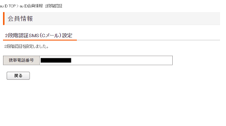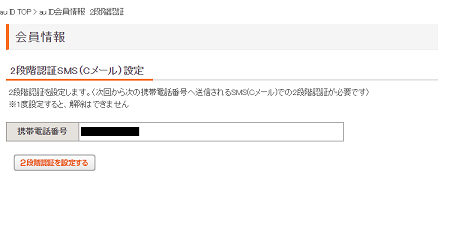 携帯電話番号を確認し、「2段階認証を設定する」を押します。
